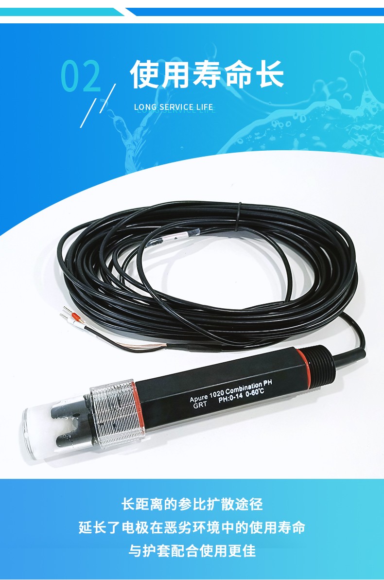 Apure塑壳ph计电极GRT1020工业在线便携式PH传感器电极探头 酸度计