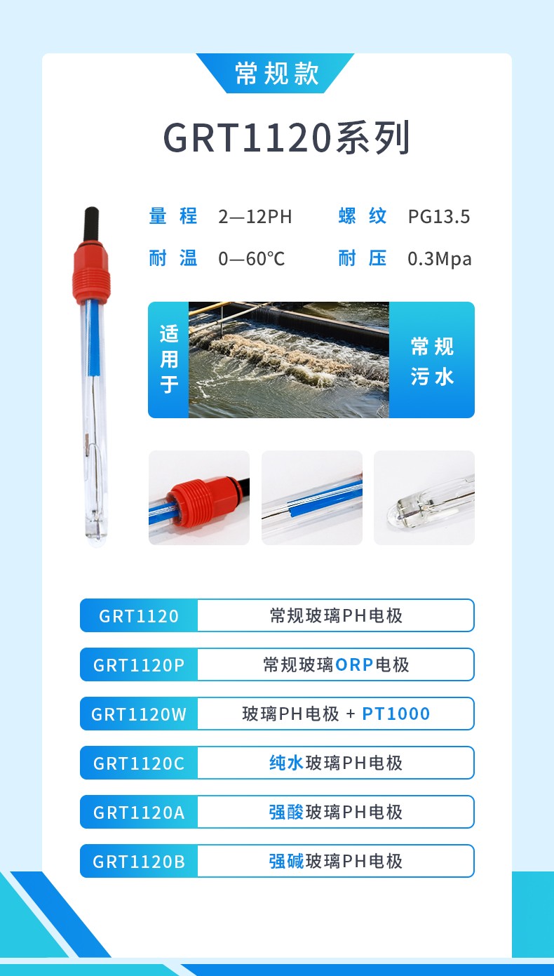 Apure玻璃ph电极探头GRT1120系列PH/ORP电极传感器在线ph计