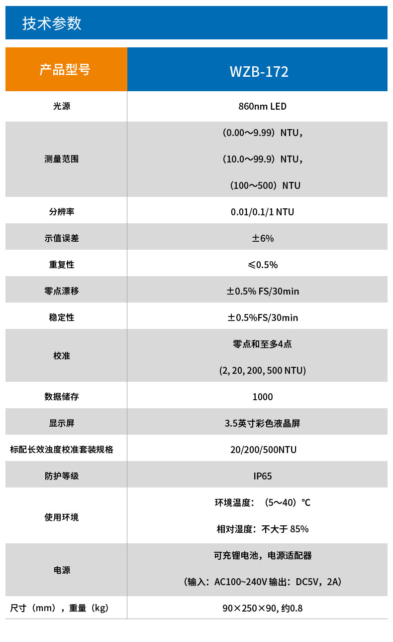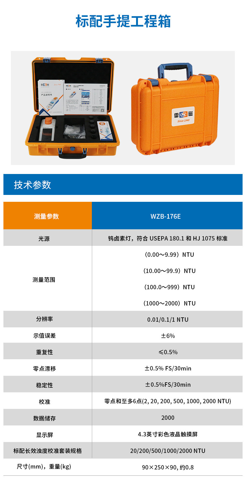 雷磁 WZB-172/175/176E 工业级便携式浊度检测仪数显水质分析仪器