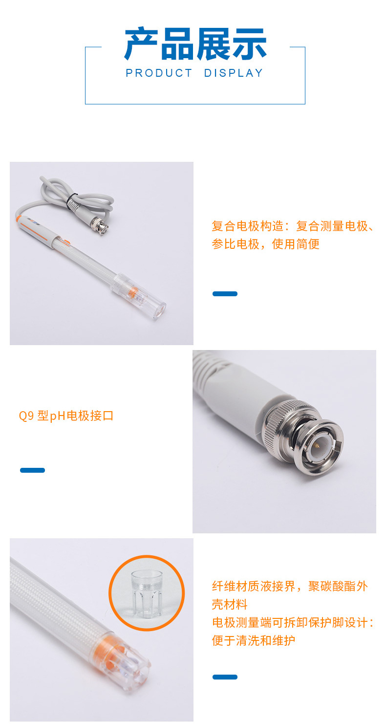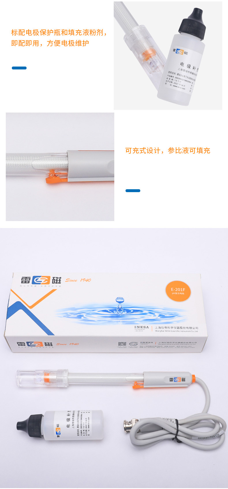 雷磁 E-201F 型 pH 电极传感器 实验室便携式复合电极 ph 检测探头